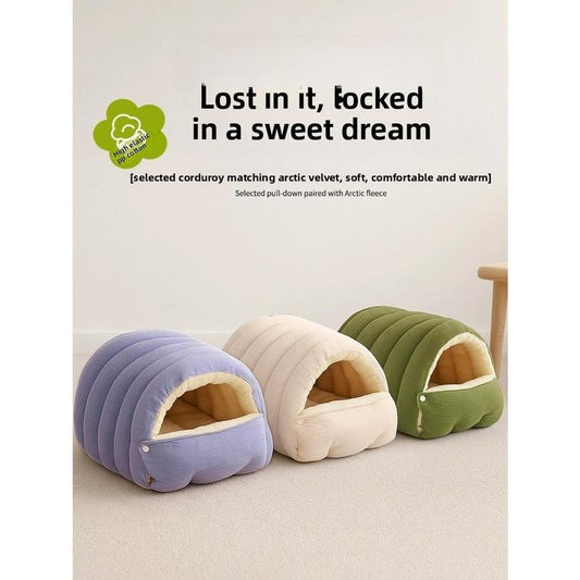 Cozy Cat House for Winter - Removable & Washable Fleece-Lined Nest for Ultimate Warmth